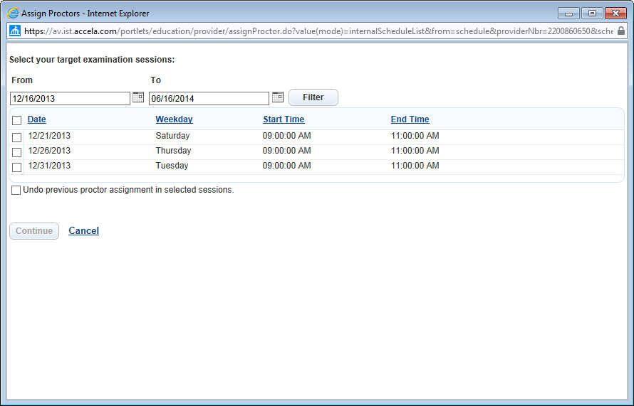 The following process assumes that you have already scheduled the examination and defined examination sites for the examination. If you have not done these tasks, see Scheduling an Examination before you assign a proctor.