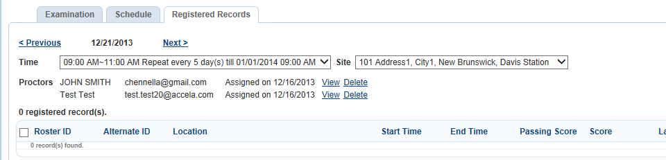 You can remove proctors from an exam event using functionality on the Registered Records tab. When you remove a proctor, Civic Platform sends an email to that proctor to notify him/her of the change in assignment.